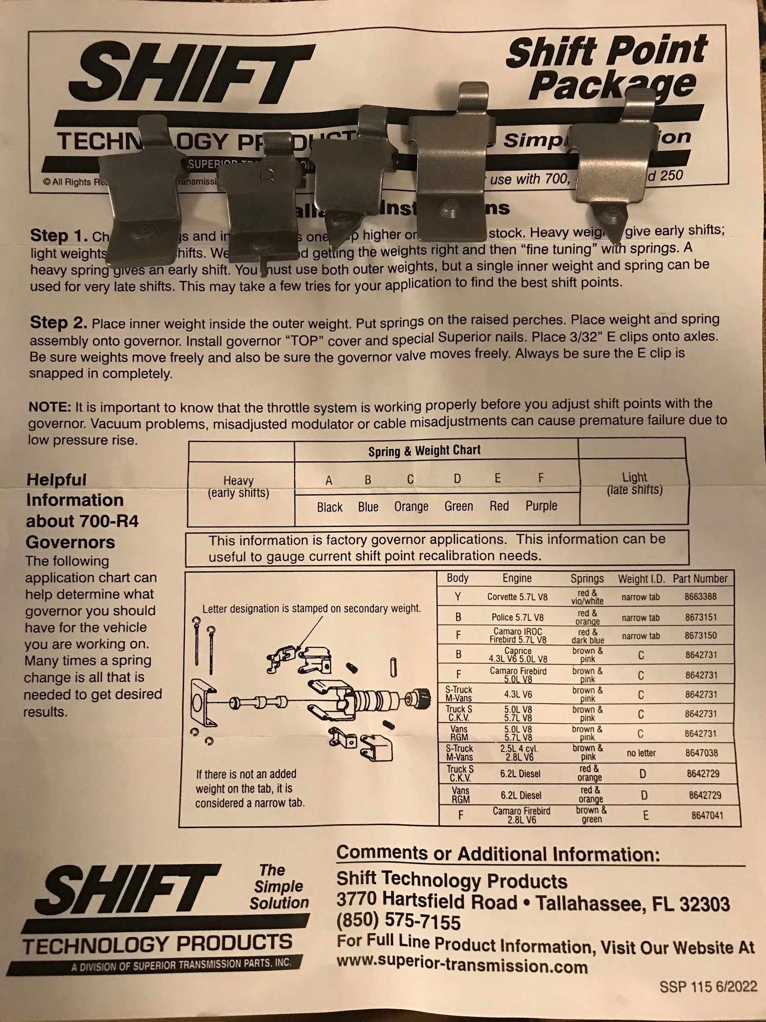 you need to get a governor adjustment kit if you want to tune the shifts and may need two kits if real particular with the tunning, the springs affect part throttle shifts, the inner weights affect WOT, the outer weights i assume is what is more critical to being matched with the valve body you may be able to get away with just removing the lightest spring on your current govenor