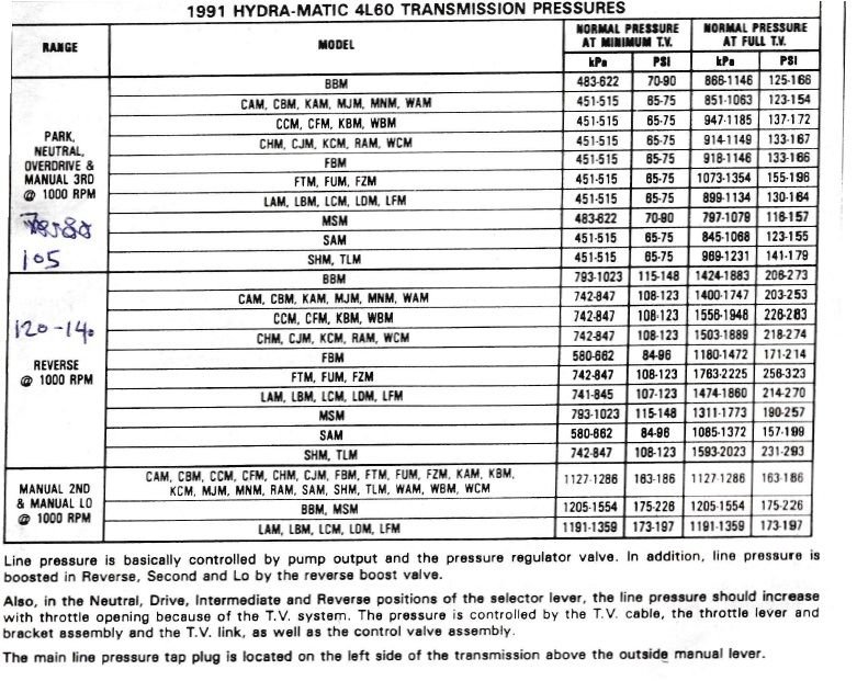 ATSG manual indicating line pressures.