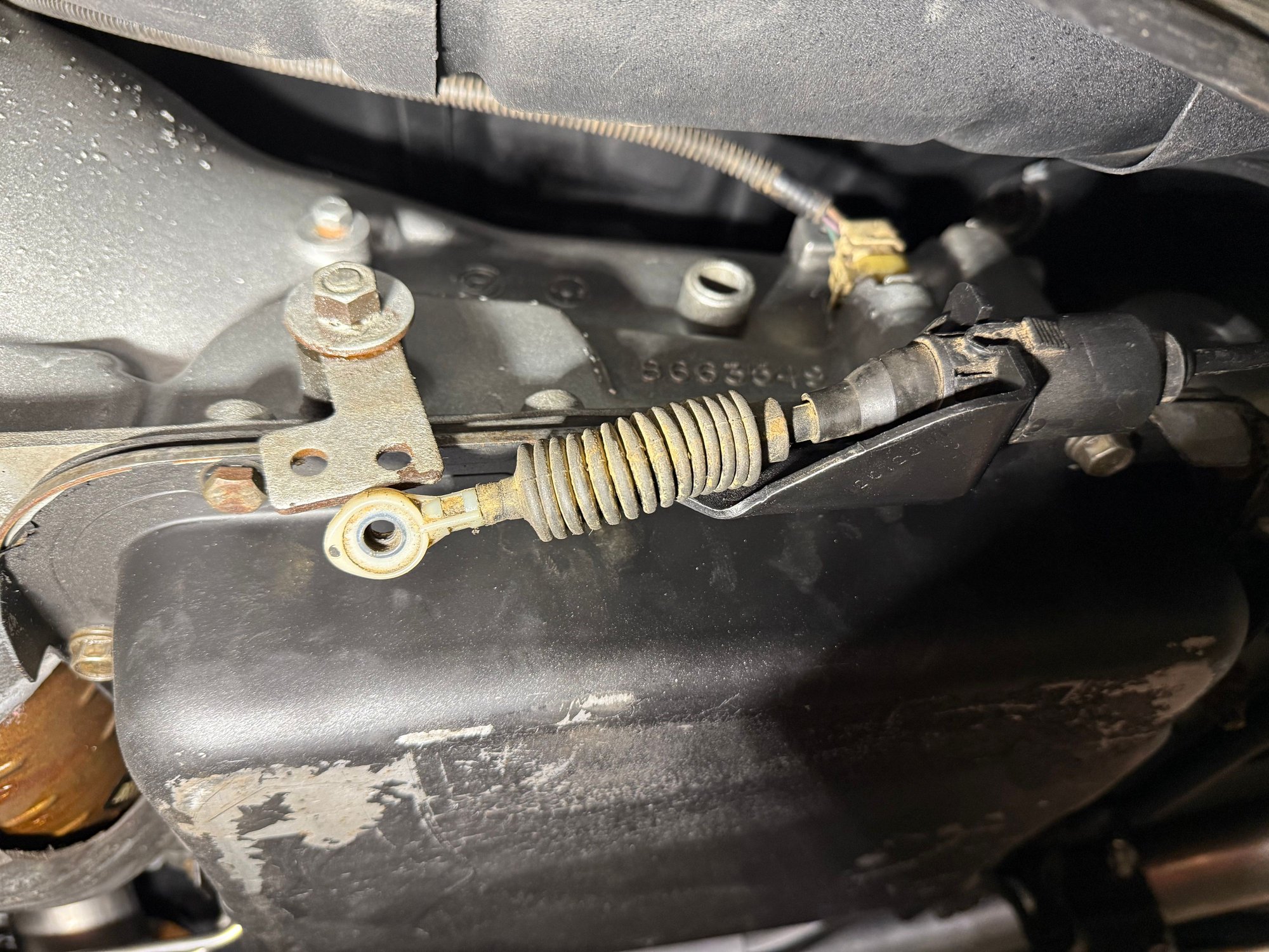 im not sure how the lever bolts onto the shifter cable. I have attached a few photos of what I’ve got. It previously had a B&M shifter cable and I’m reverting it to factory. I was going to just run a nut and bolt through them but realized I cannot do that because when the lever is all the way…see photos…it’s beside the pan so that doesn’t work. Now I need to know how the cable connects to the lever. I looked at the Haynes manual for photos however they are not clear