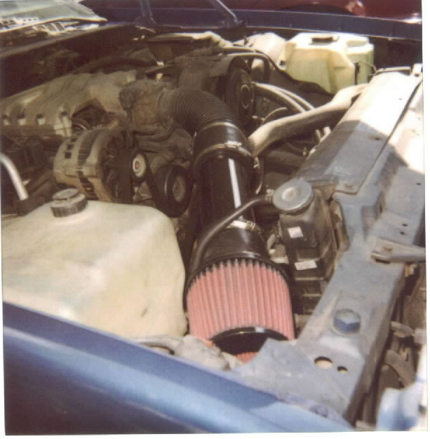 ), next visit your local home depot and pick up some 3 in pvc piping (probably gonna have to be cut to size), then get two pipe connectors (big black rubber tubes with clamps on either side) it'd be good if you can find an elbow connector. anyway... the rest should be self explanatory. remove everything you've got in there already, except for the section leading directly into the throttle body. now, you get to really appreciate your '91, because you don't have to deal with the mass airflow sensor. that's it!!! it may not be cold air, but it's more air.... if you really want cold air, try building some sort of head resistant box around the filter, and try to run some piping up from the passenger wheel well. i didn't do this...... yet