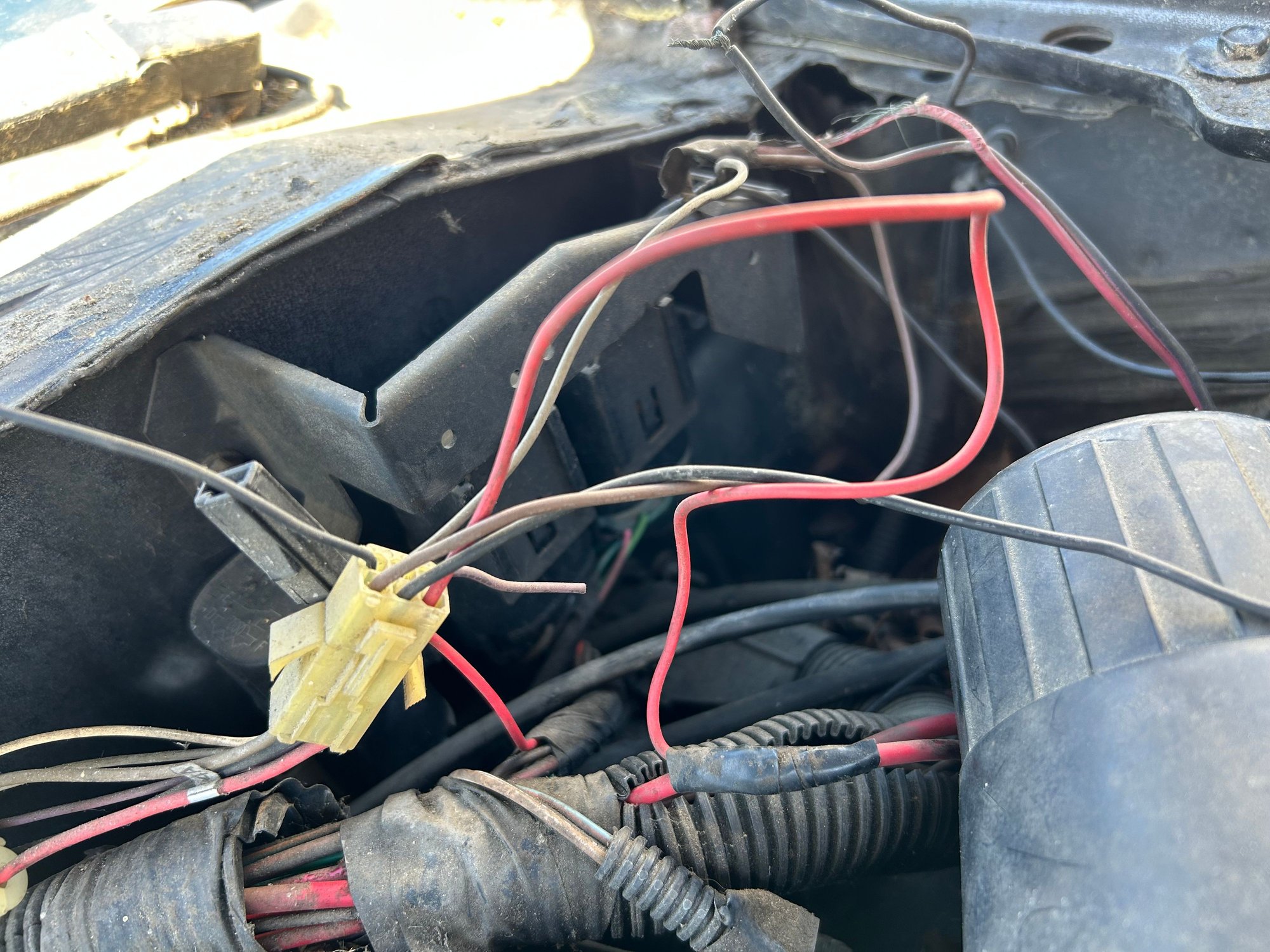 Help please. New project car, 3.1L V6. Swapped the ignition cylinder and bypassed the VATS with a resistor. Security light goes out when ignition is on and engine will crank. Engine starts with starting fluid in the throttle body but doesn’t continue to run. I’m assuming there is a problem with the fuel system. However, I believe the fuel pump prime connector is disconnected. I have a random connector that has wires spliced off of it to the alarm and cut wires. I’m guessing someone tried bypassing the VATS system by splicing wires directly to the fuel pump. But my main question is what is this white/yellow connector by the driver side firewall. Any help appreciated.