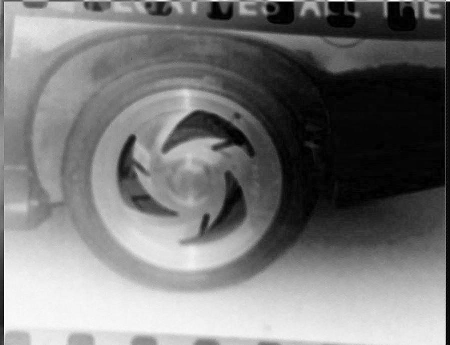 What I do remember: They were kind of a "sawblade-ish" type design (sort of like the Center Line Trigon, perhaps?). However, a lot of companies that make those kinds of asymmetrical wheels (like the Trigons), don't make separate left/right side wheels. So on the drivers side they're facing forward, and on the passenger side they're facing backwards. My wheels actually had separate driver/passenger side wheels so they would all face forward.