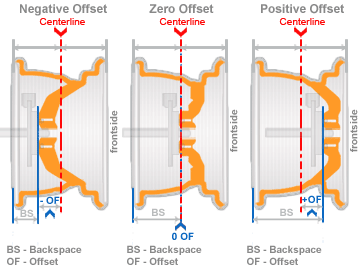 In your case you are wanting to run a 16X8 rim. 0mm offset results in a 4.5" backspace or half of the rim with (when you measure outside lip to outside lip a 8" rim it actually measures 9". This is on the front. The rears have a higher offset, which means the rim is actually pulled further into the vehicle. This increases fender lip clearance, but decreases the inner clearance. In your case if you ran the front rims on the rear, the wheels would stick out farther then the original rear rims. If you add spacers, you would be compounding this effect making it worse. You may be able to run a 0mm offset on the rear without any issue.