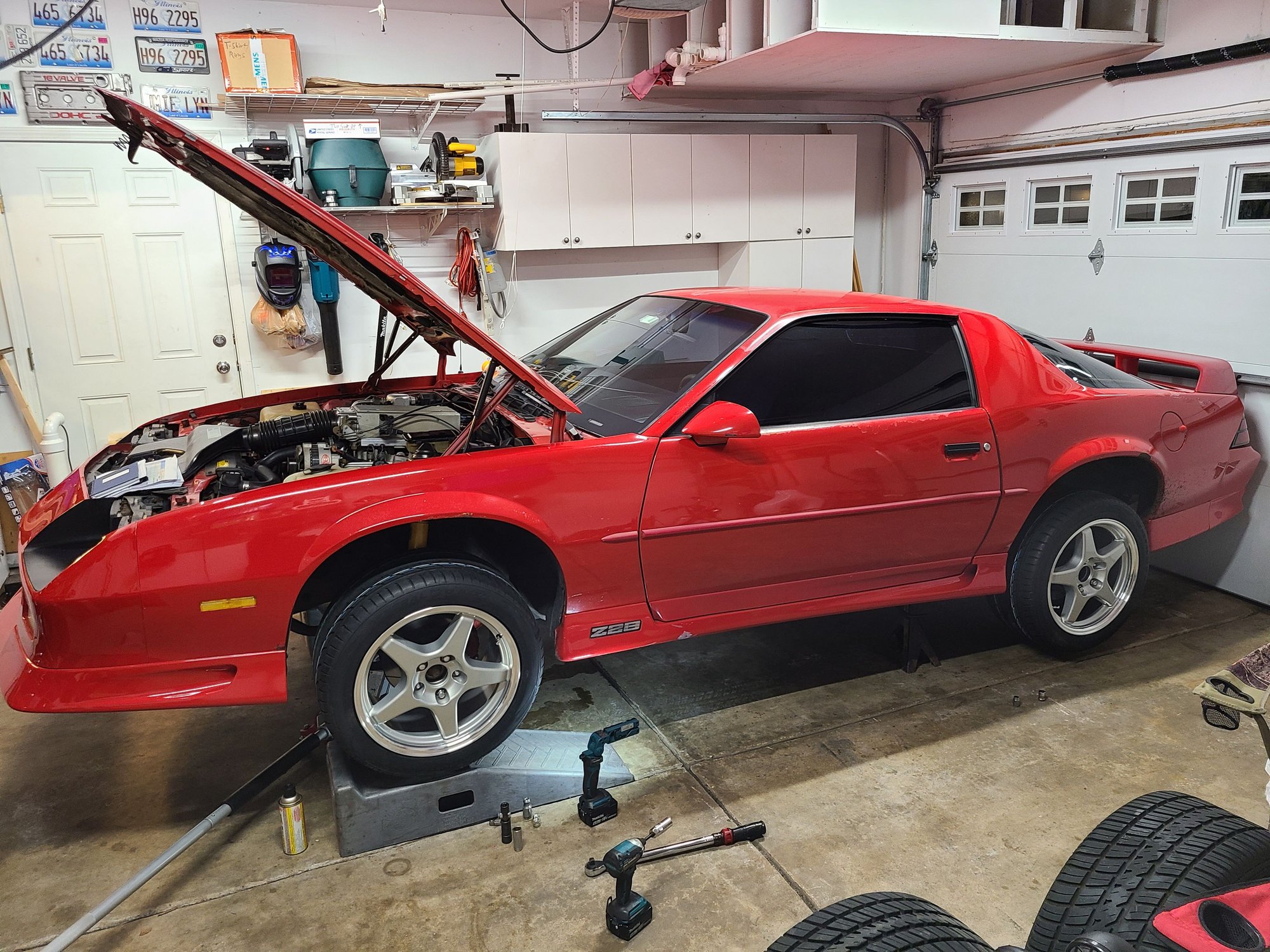 I have new wheels for my '91 Z28 ready to go on, as I prepare to start autocrossing this spring. They are 17x9.5 square ZR1 corvette wheels from OE wheels. I need to take a few more measurements but I suspect I need about 2.25" thick spacers in the front, and 1.75" thick in the rear.
