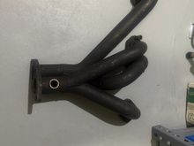 This is the spacer used on the H.O. passenger side cast iron exhaust manifold with the later N10 dual cat exhaust system. Using my built in eyeball micrometer this spacer is no where near as thick as the older EFE valve style spacer. The older spacer is about 1 3/16 of an inch thick eyeballing it against a Starrett machinist scale.