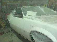 First round of bondo on the fender. This was an nos fender with no antenna hole but it was never primes so it surface rusted and had been dented prior. For the time I have in it would have been easier to use a diff one but keeping orig parts with the car