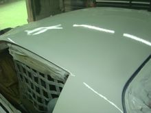 Passenger front half of roof. All the bare metal spots are high spots and the shiny unsanded ones are low spots.