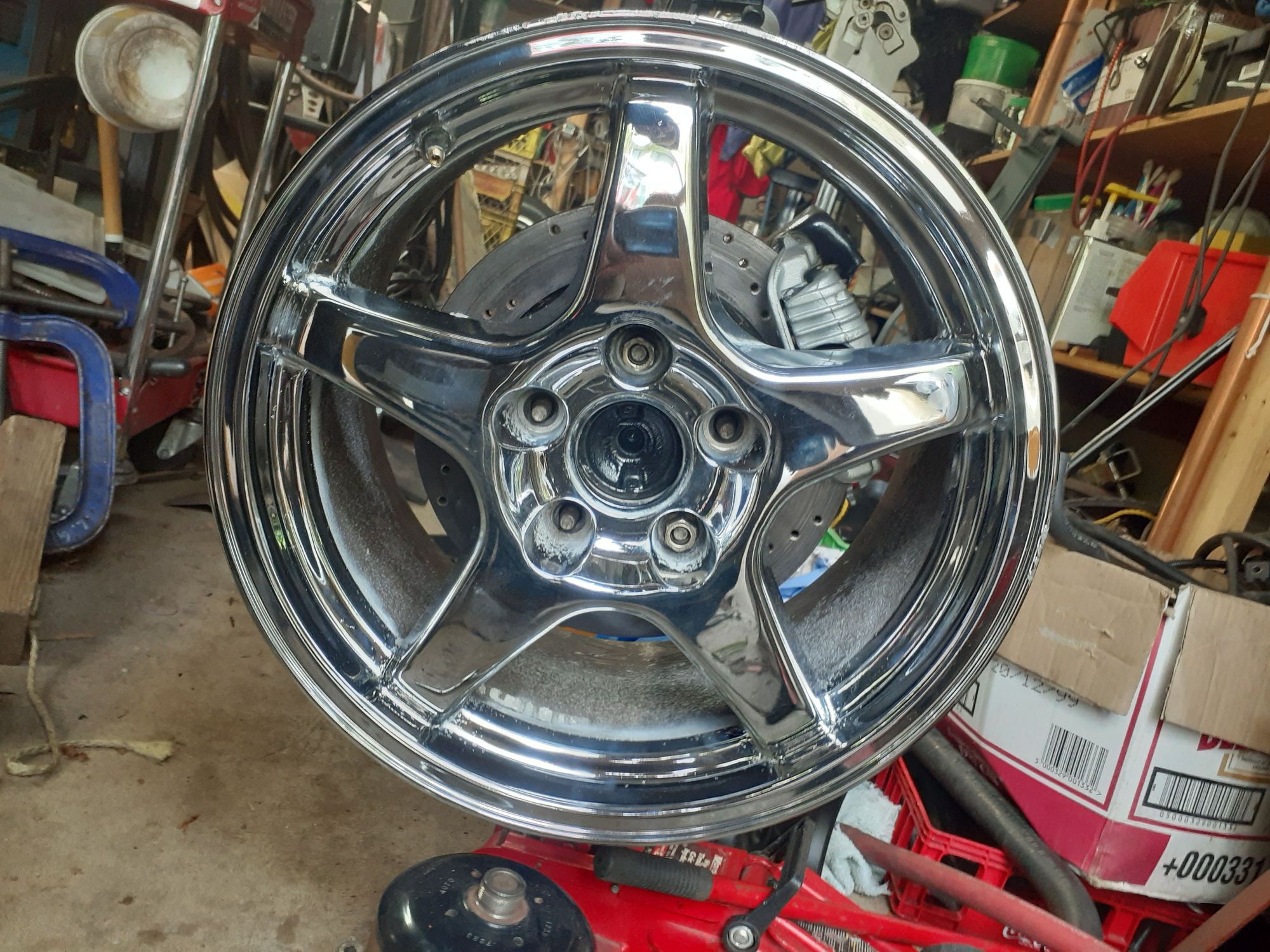 I also picked up some used rims for a good price. They are 17x9.5 ZR1 style. They need a little work to clean up the flaking chrome and curb rash and I plan on painting them black. But for the price I couldn't resist.
