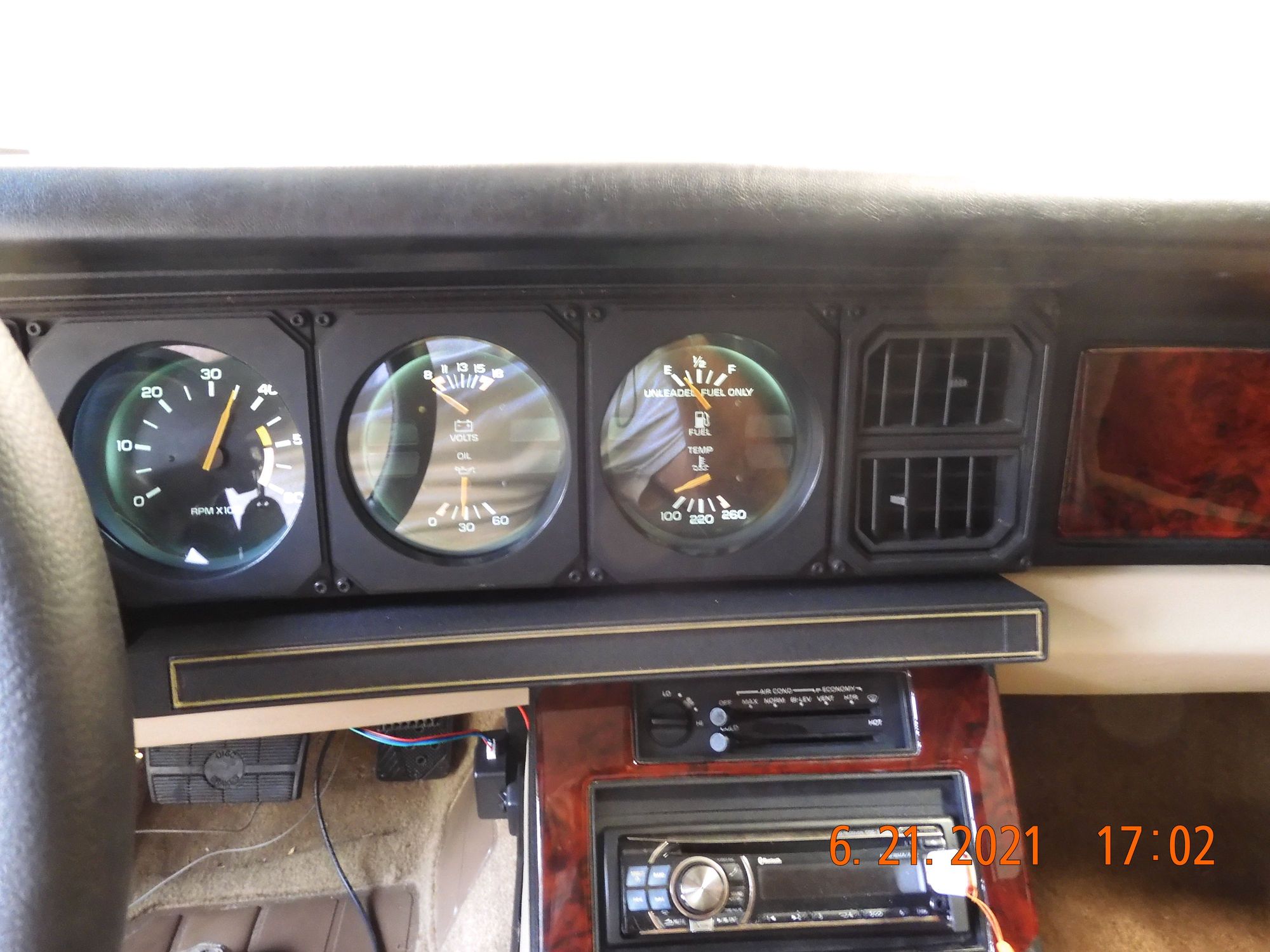 My gauges have a greenish glow, so goes good with the aux gauges, and they dim nicely when you turn the lights on