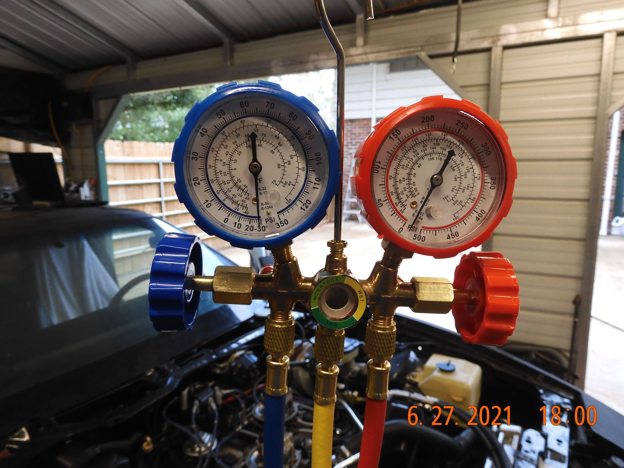 Recharged and it is blowing cold again, I figure in was running in the 450+ psi range when the relief valve blew, now around 250/40 psi.