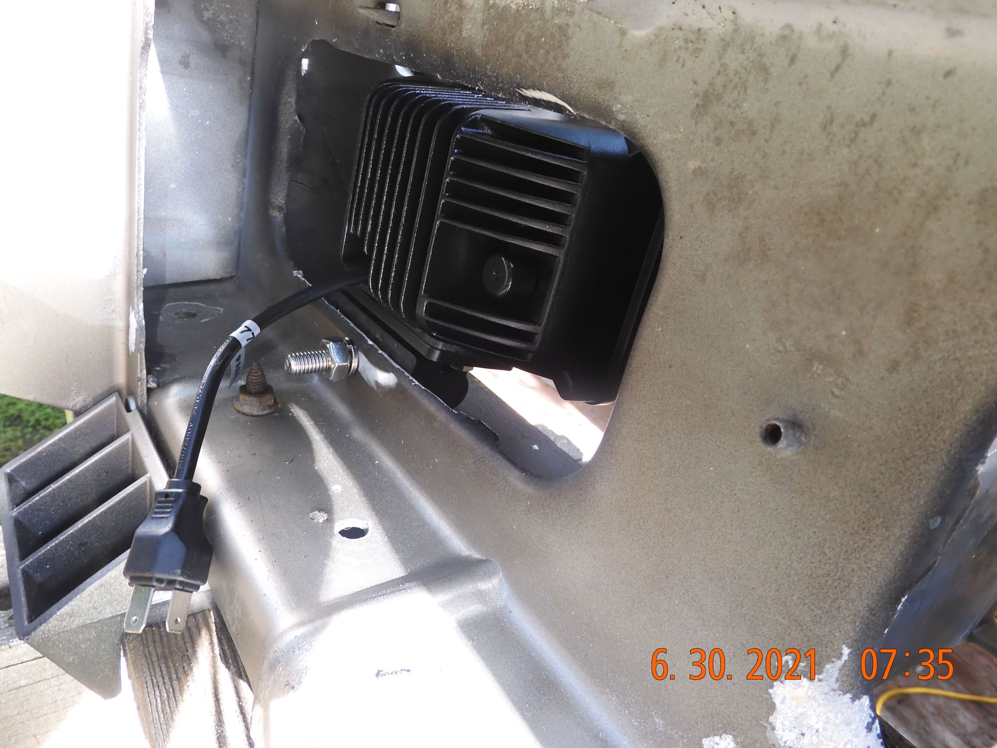 With a cutoff wheel, removed about 3 inches of the lip around the hole to allow the light bracket to seat. Next view is from the front.