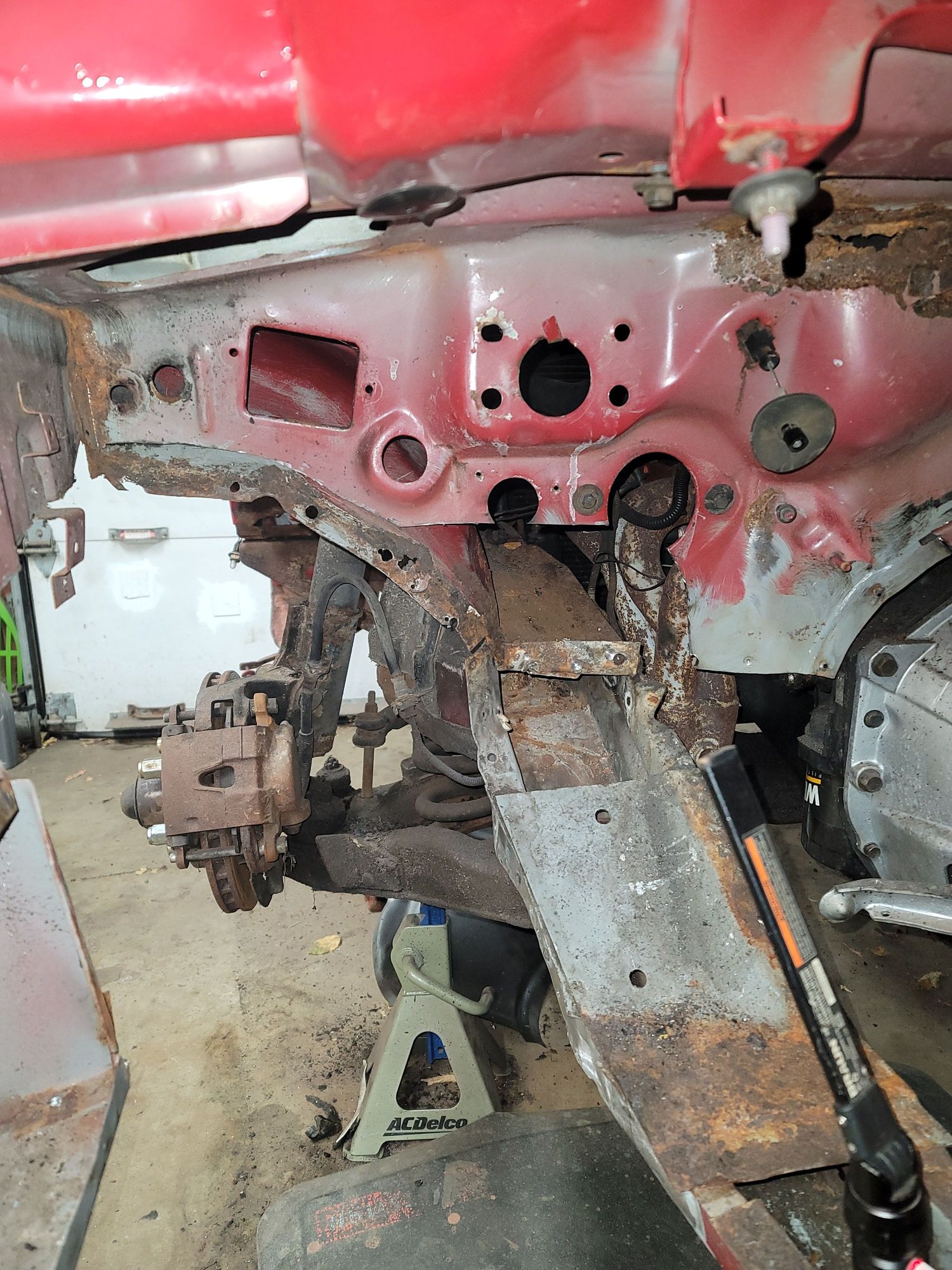 had to remove the lower firewall here. It will make it a lot easier to repair the inner fender flange and remove one of the previous owners booger welds from trying to brace the frame for the z bar.