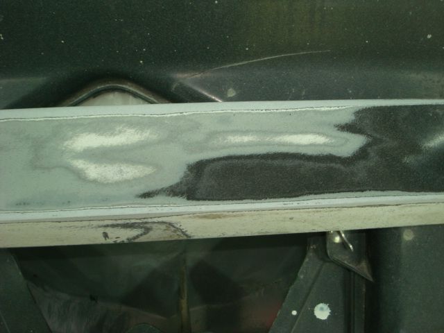 Sanding through paint layers on the door ground effect you can see the factory white, then the silver that Morrison Cook painted it and then black from whoever was the last to race it.
