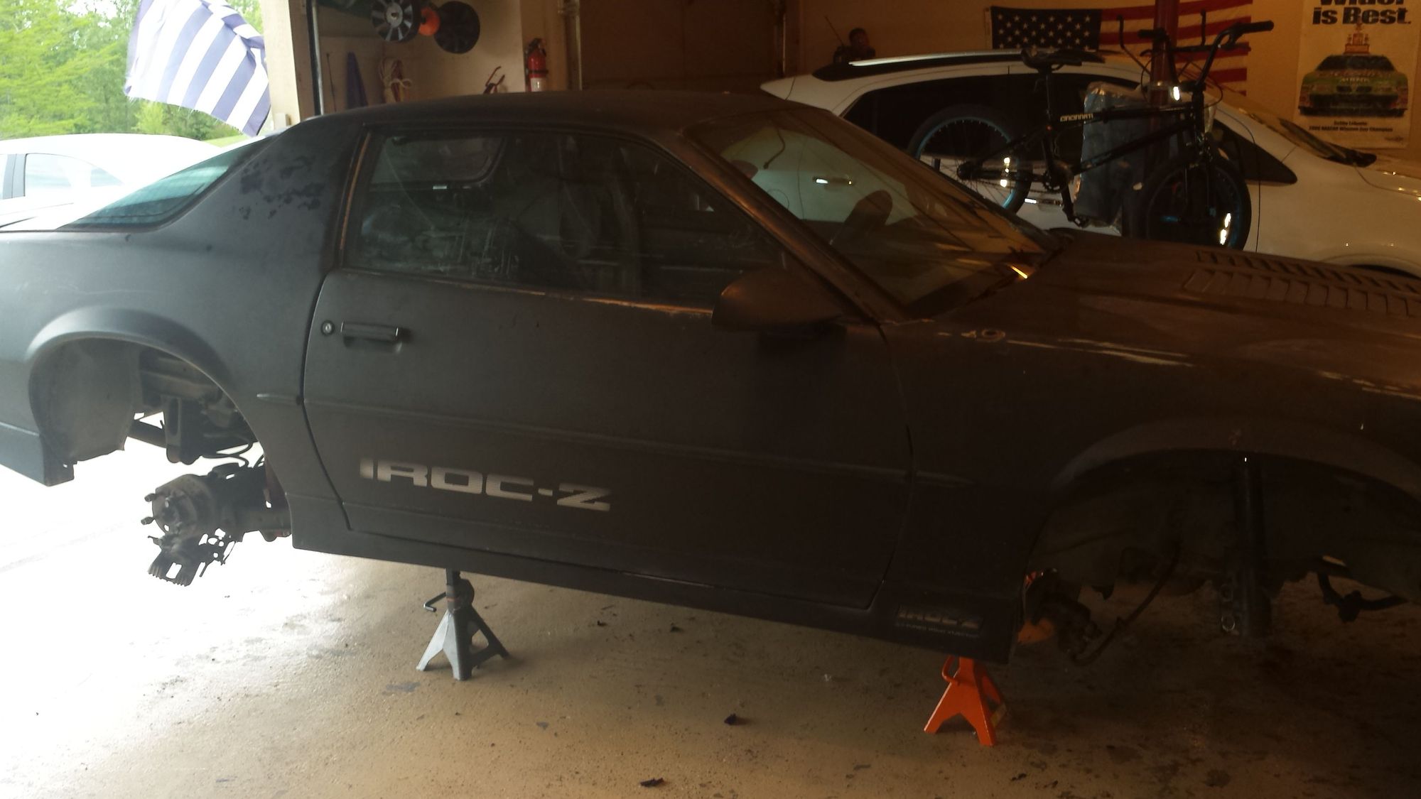 Tearing out and replacing ALL suspension components. Bushings, ball joints, bearings, brakes etc.