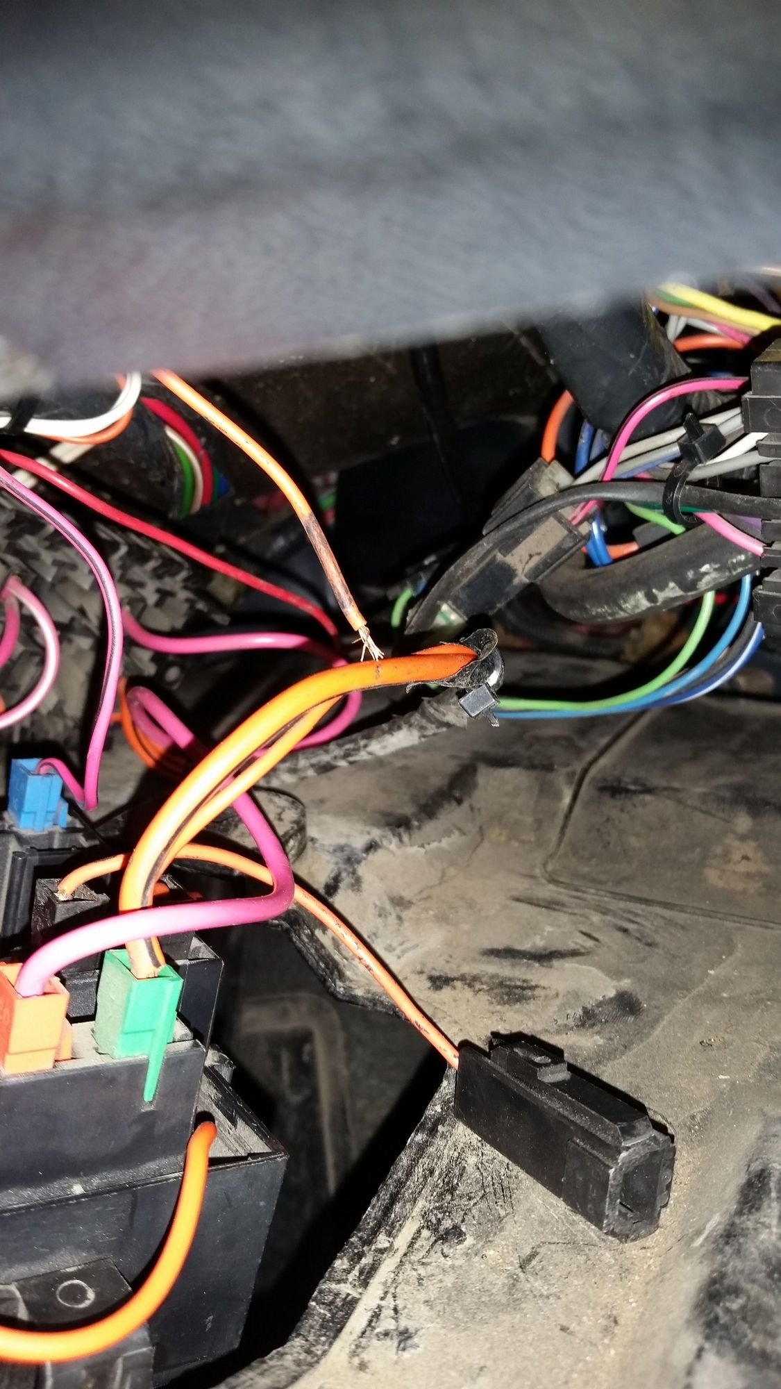 The end of the orange wire.