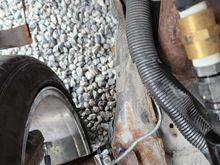 This is clearance on right front after 1/2" spacer and longer studs.